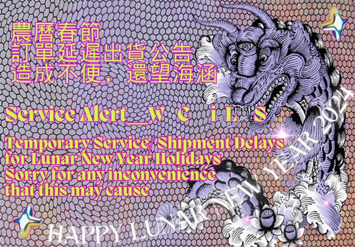 During our Lunar New Year Holidays, there may be temporary service/shipment delays,