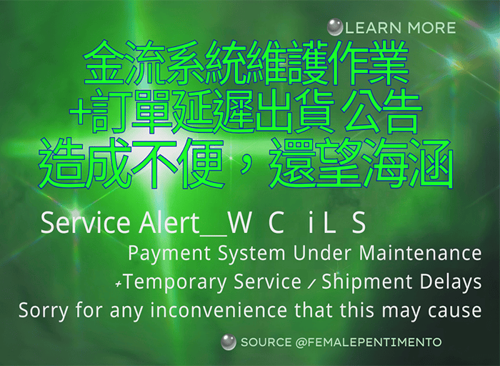 金流系統維護作業+訂單延遲出貨公告