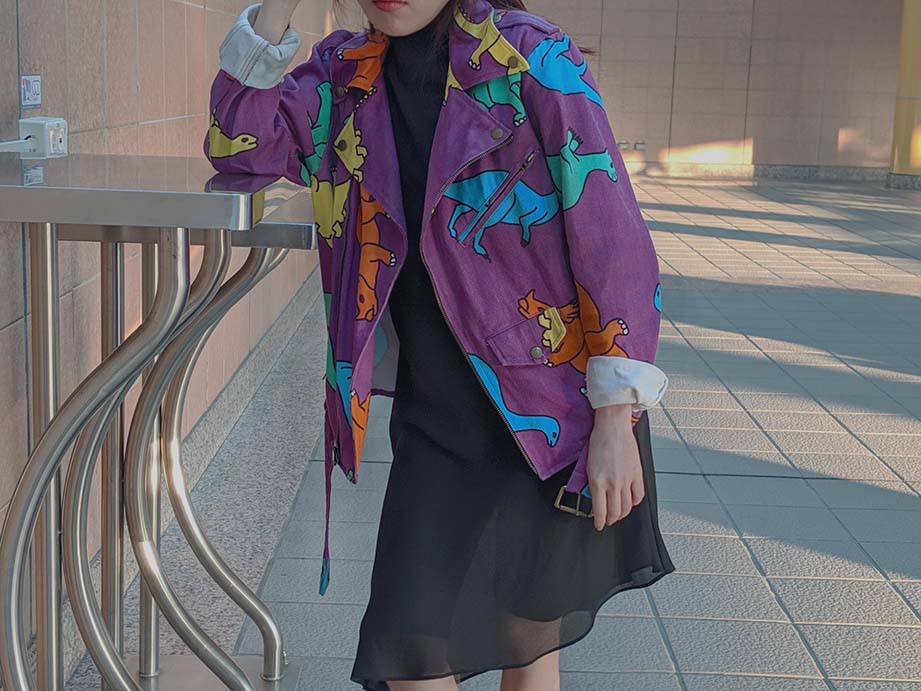 What’s in the Box:Pre-owned Shinee Purple All-over Dinosaur Print Biker Jacket x 1